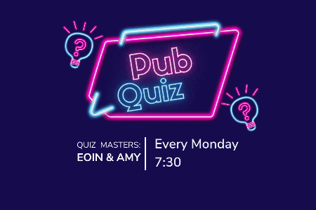 Our Quiz Masters, Eoin and Amy create a five rounds quiz weekly ; expect a mix of questions across all categories - from general knowledge and current events to music,film, and more.